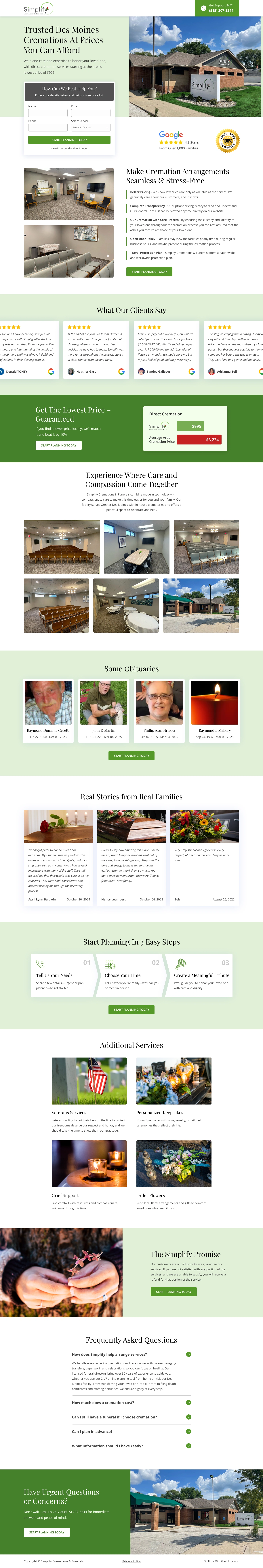 We deliver a complete cremation landing page — ready for your website or ad campaign.